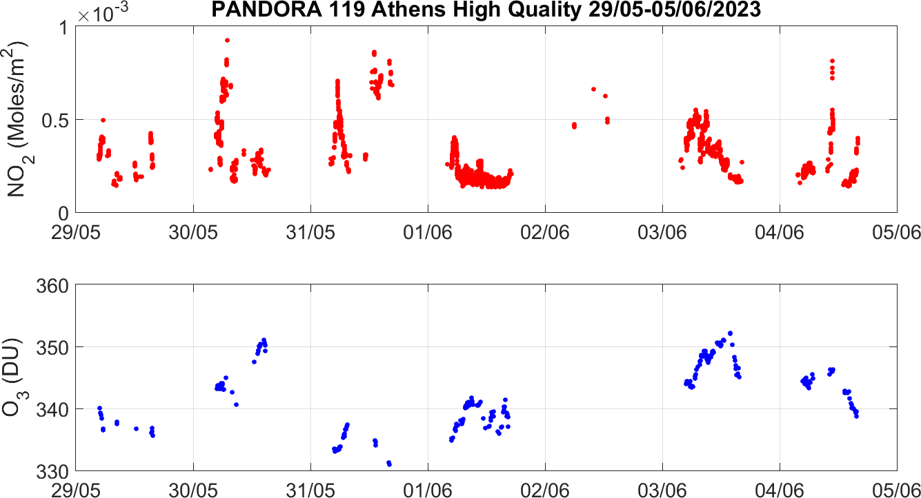 Weekly NO2 & O3 timeseries from 29/05/2023 to 05/06/2023