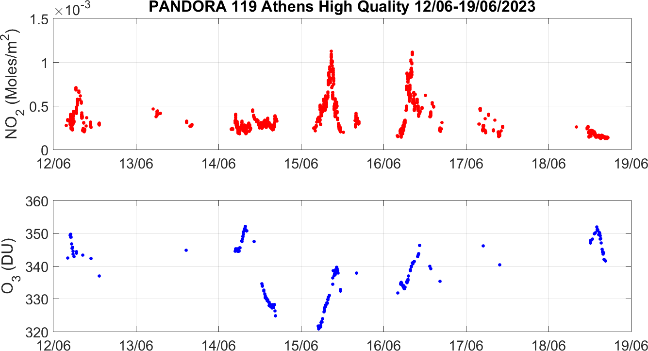 Weekly NO2 & O3 timeseries from 12/06/2023 to 19/06/2023