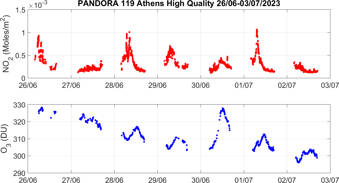Weekly NO2 & O3 timeseries from 26/06/2023 to 03/07/2023