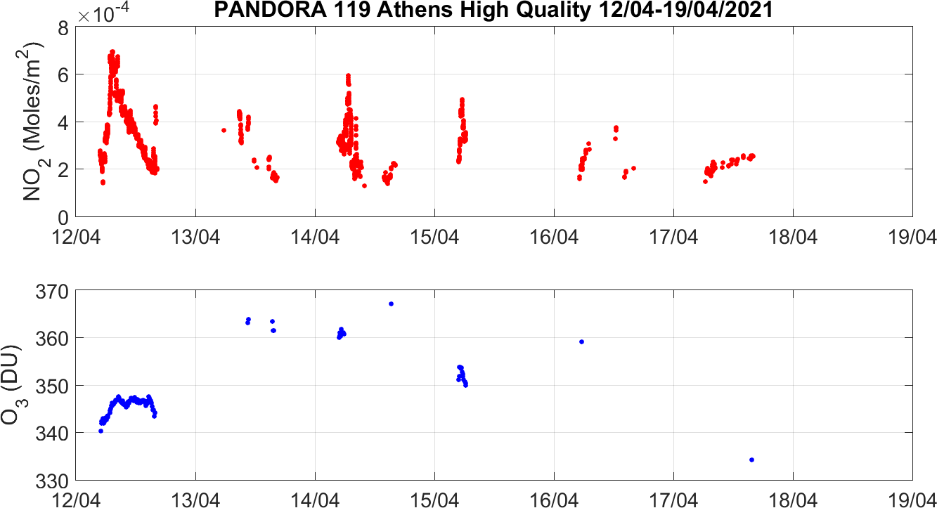 Weekly NO2 & O3 timeseries from 12/04/2021 to 19/04/2021