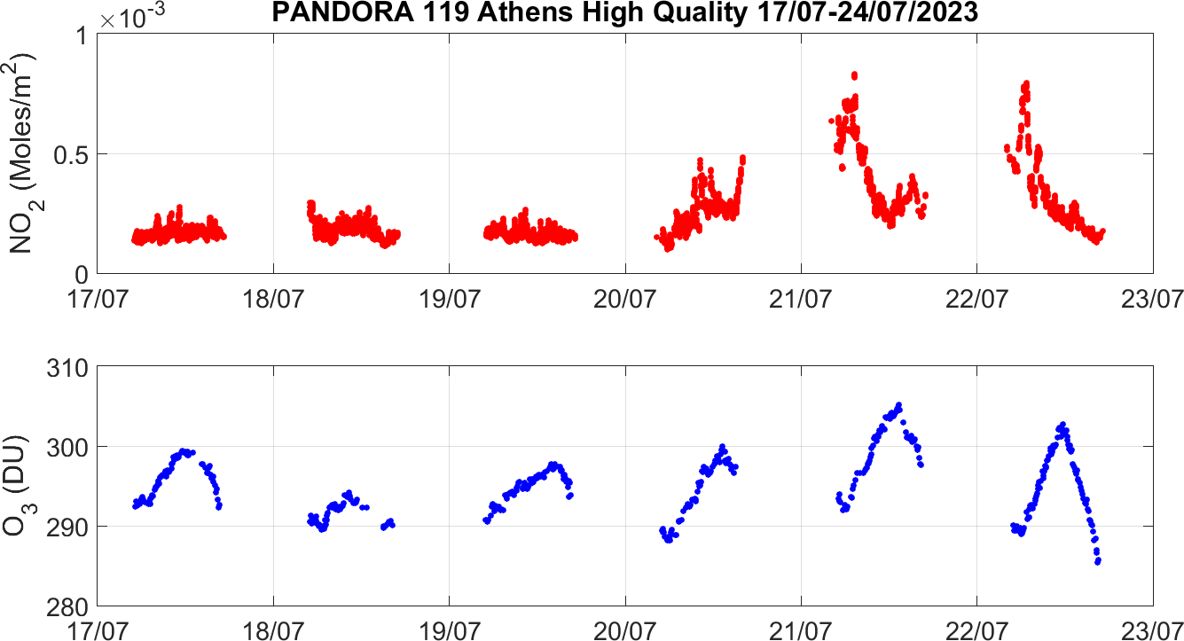 Weekly NO2 & O3 timeseries from 17/07/2023 to 24/07/2023