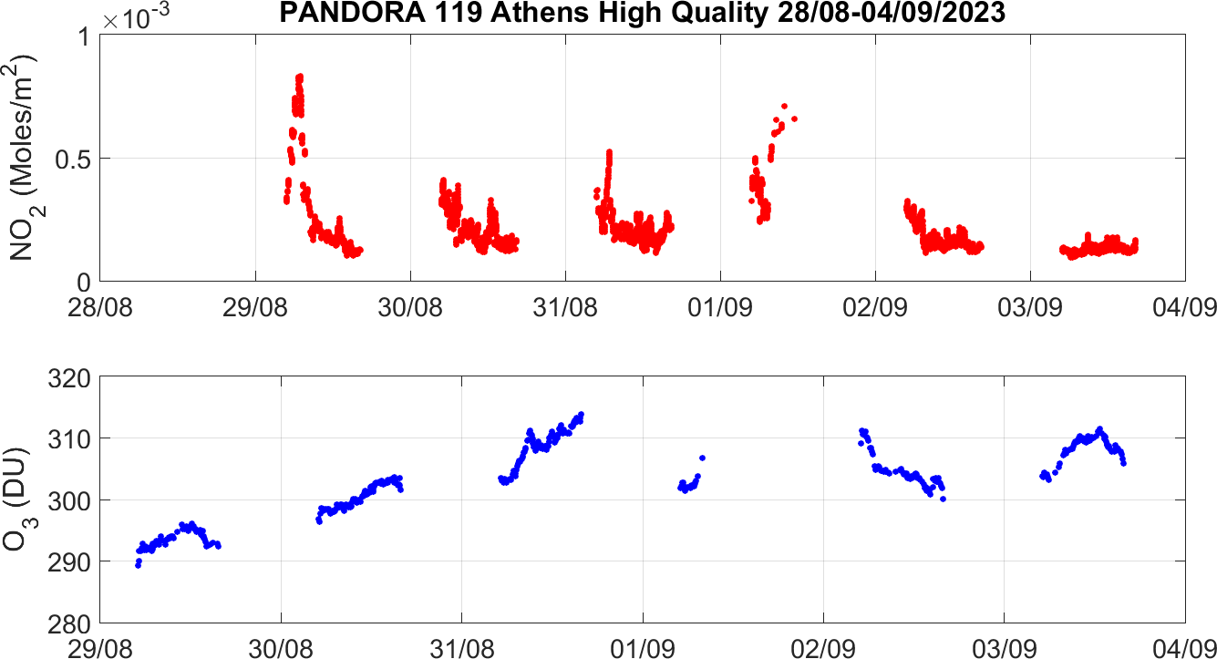 Weekly NO2 & O3 timeseries from 28/08/2023 to 04/09/2023
