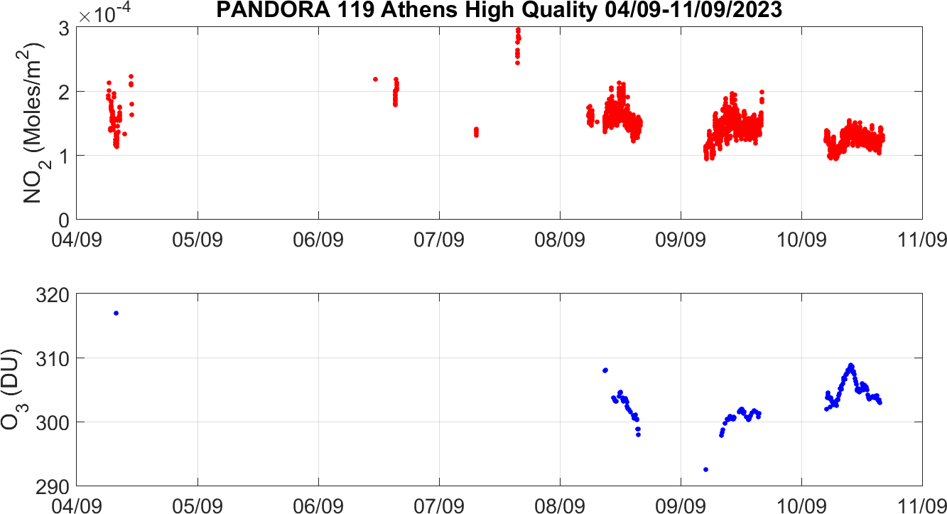 Weekly NO2 & O3 timeseries from 04/09/2023 to 11/09/2023