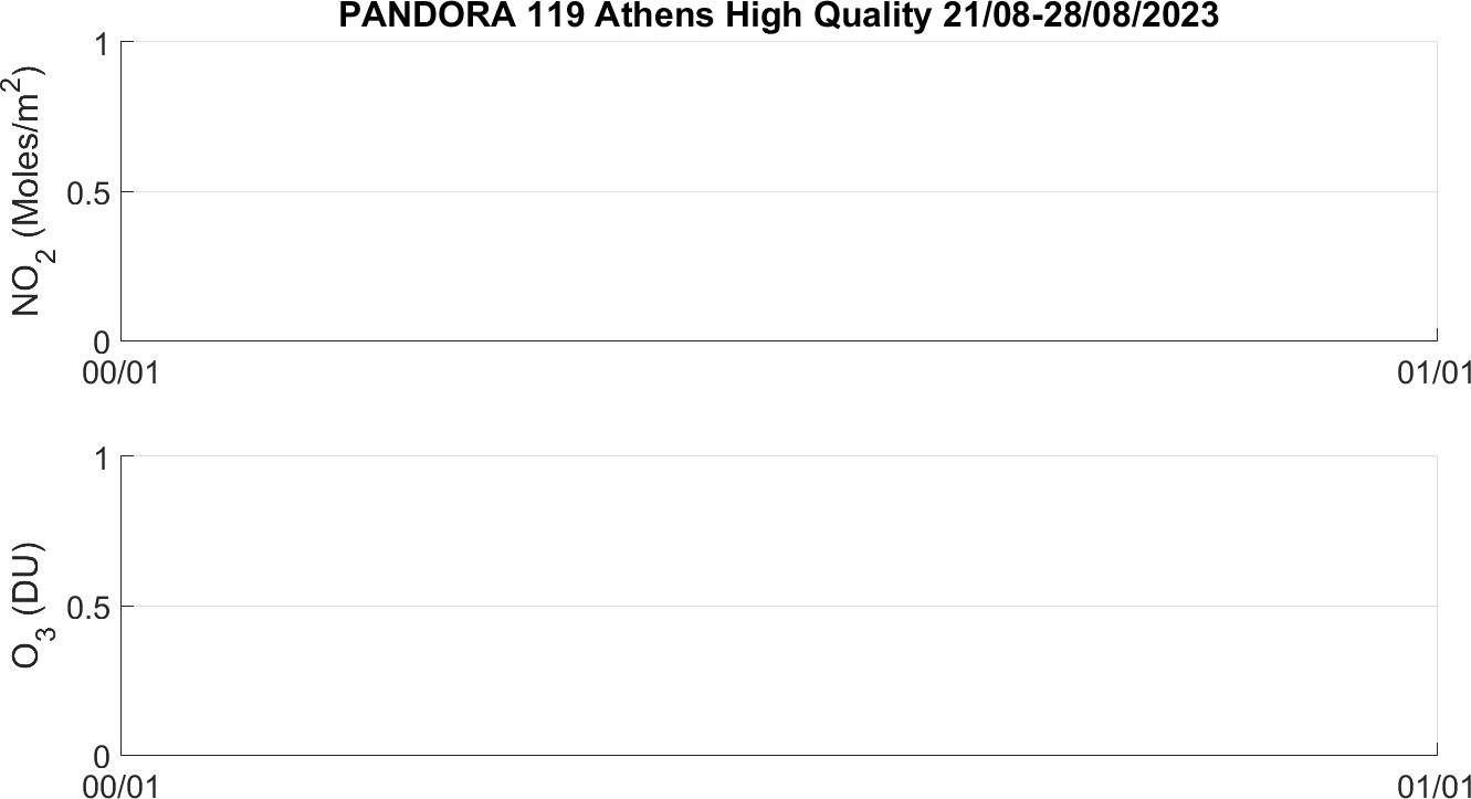 Weekly NO2 & O3 timeseries from 21/08/2023 to 28/08/2023