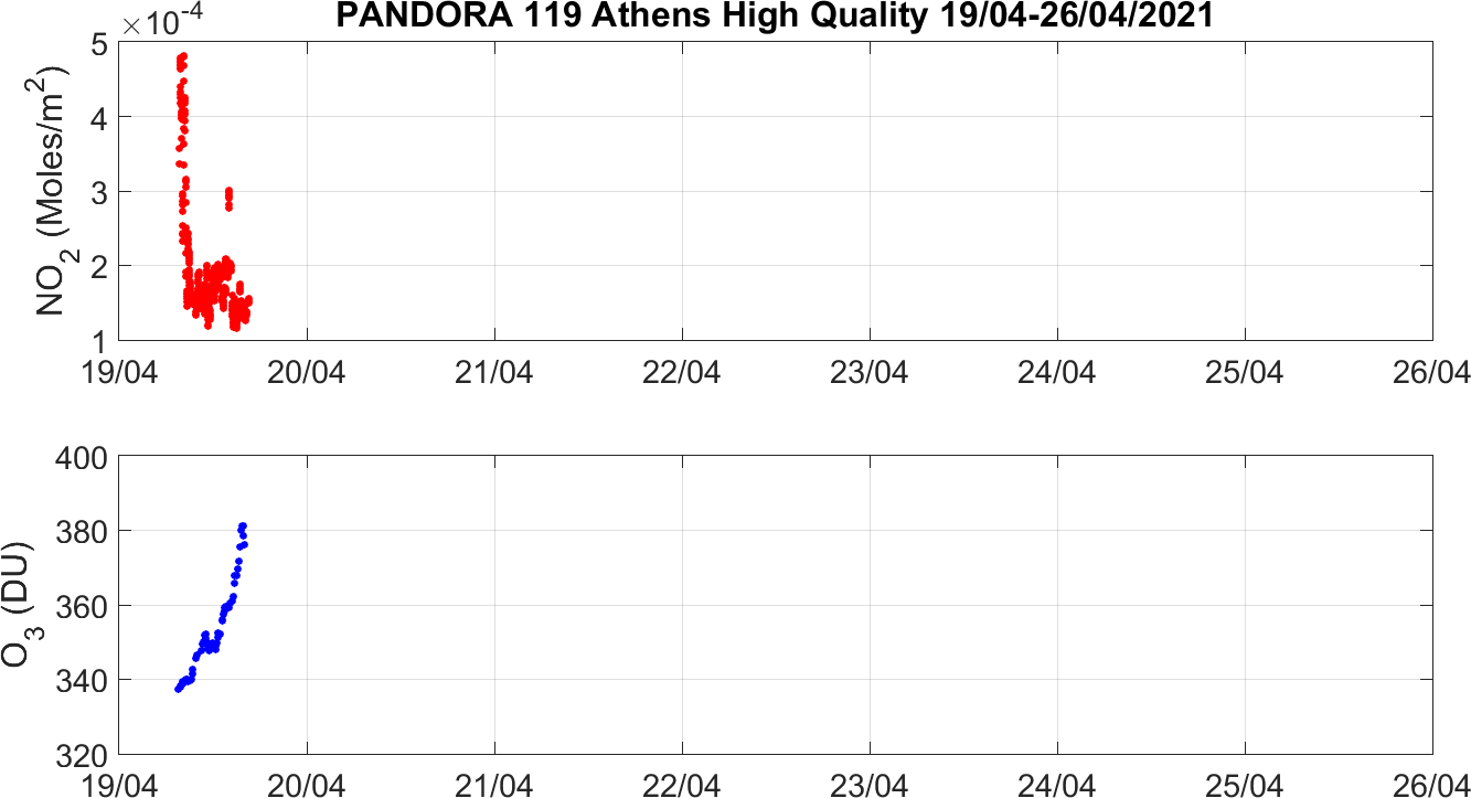 Weekly NO2 & O3 timeseries from 19/04/2021 to 26/04/2021