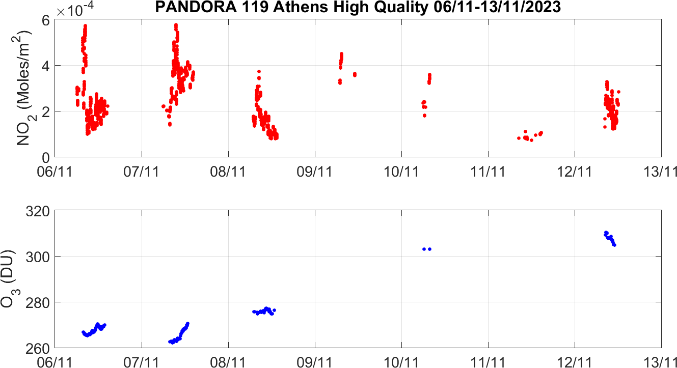 Weekly NO2 & O3 timeseries from 06/11/2023 to 13/11/2023