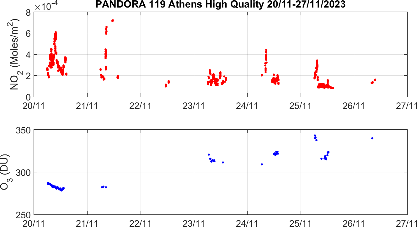 Weekly NO2 & O3 timeseries from 20/11/2023 to 27/11/2023