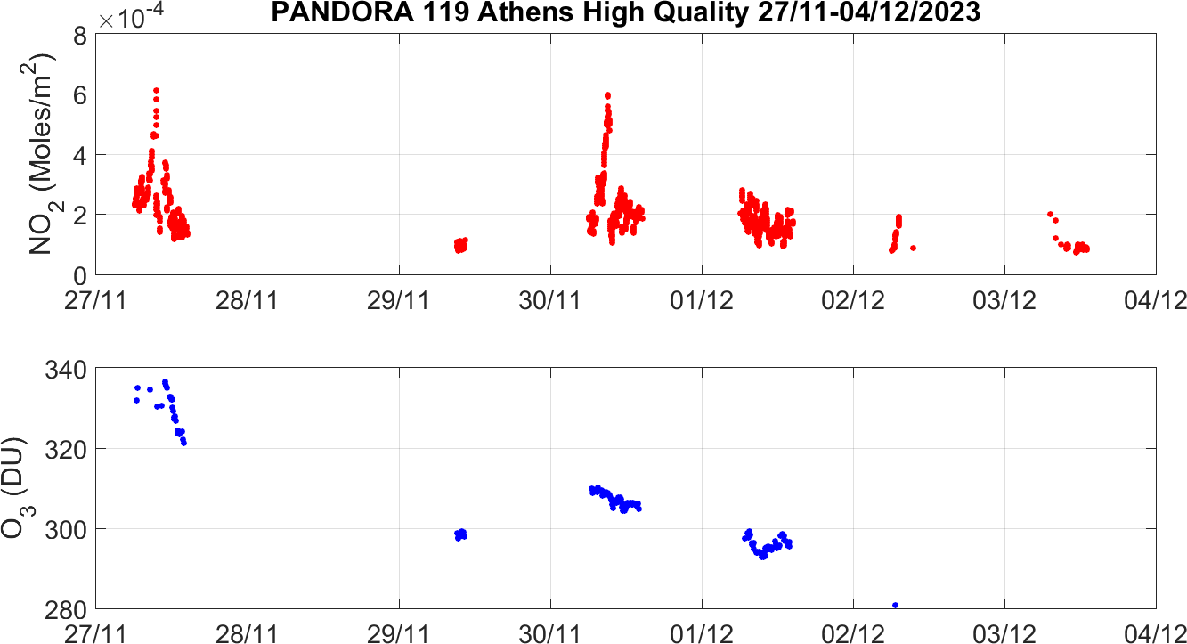 Weekly NO2 & O3 timeseries from 27/11/2023 to 04/12/2023