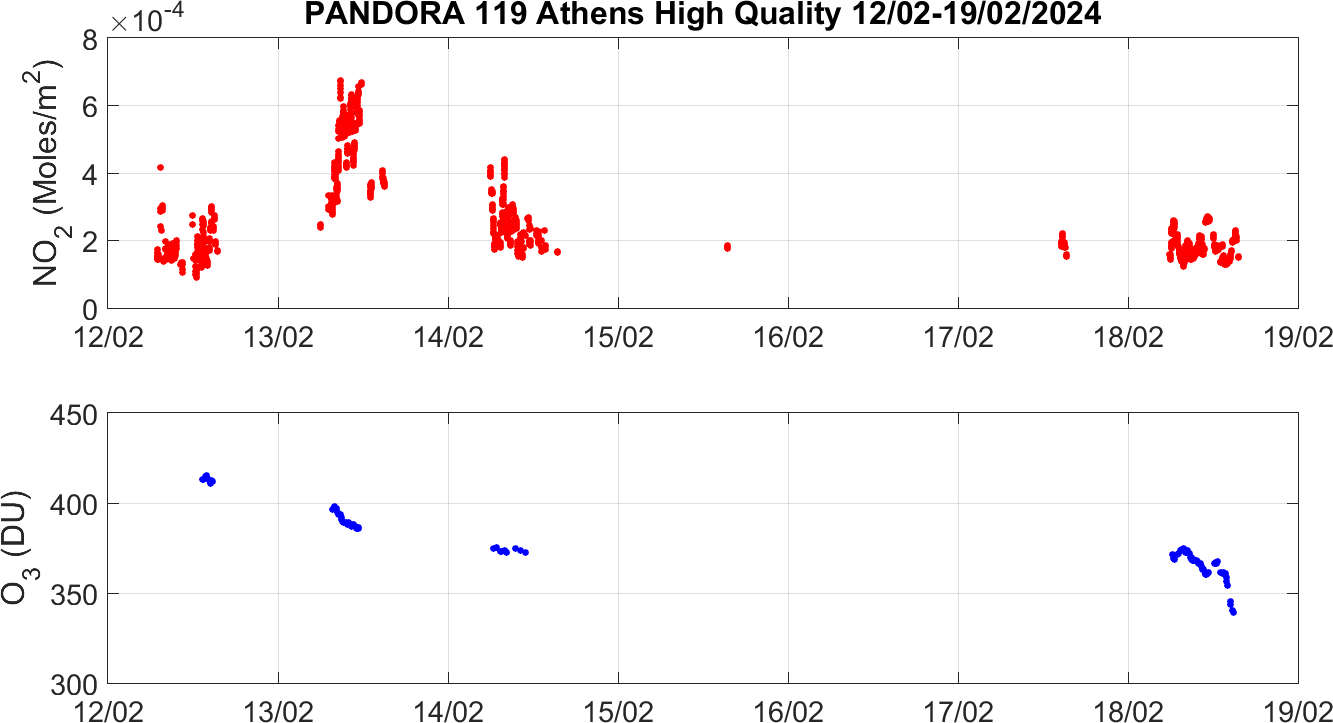 Weekly NO2 & O3 timeseries from 12/02/2024 to 19/02/2024