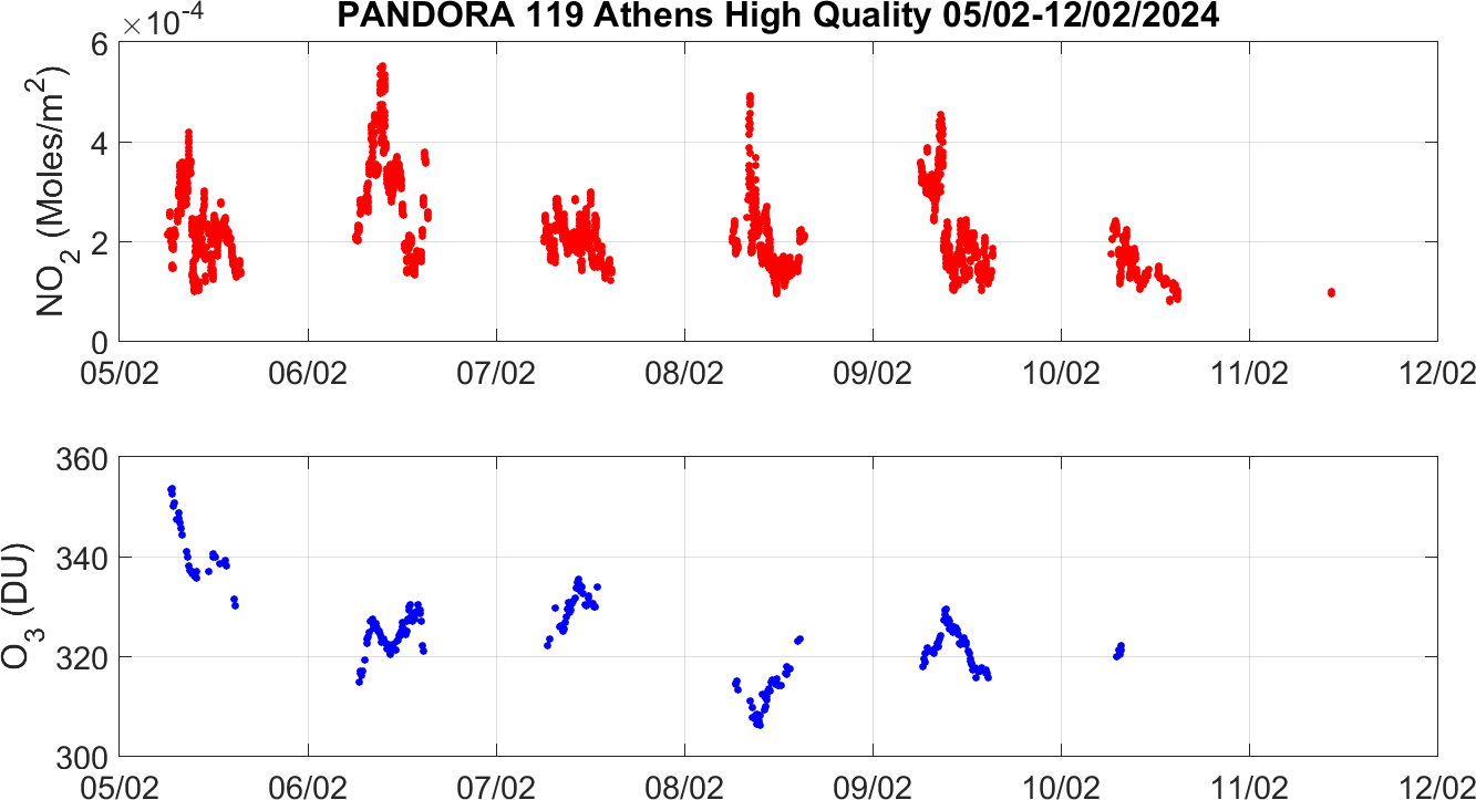 Weekly NO2 & O3 timeseries from 05/02/2024 to 12/02/2024