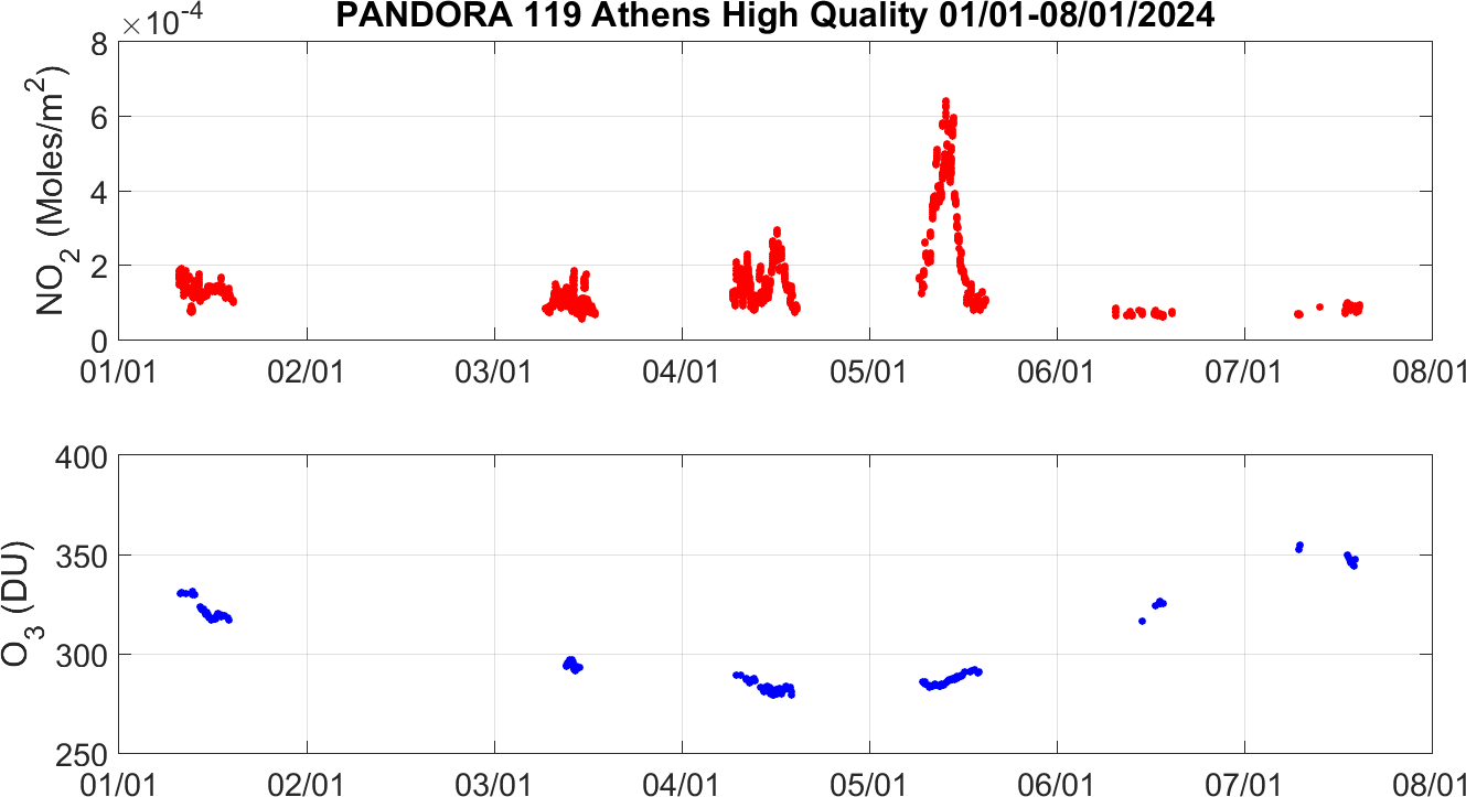 Weekly NO2 & O3 timeseries from 01/01/2024 to 08/01/2024