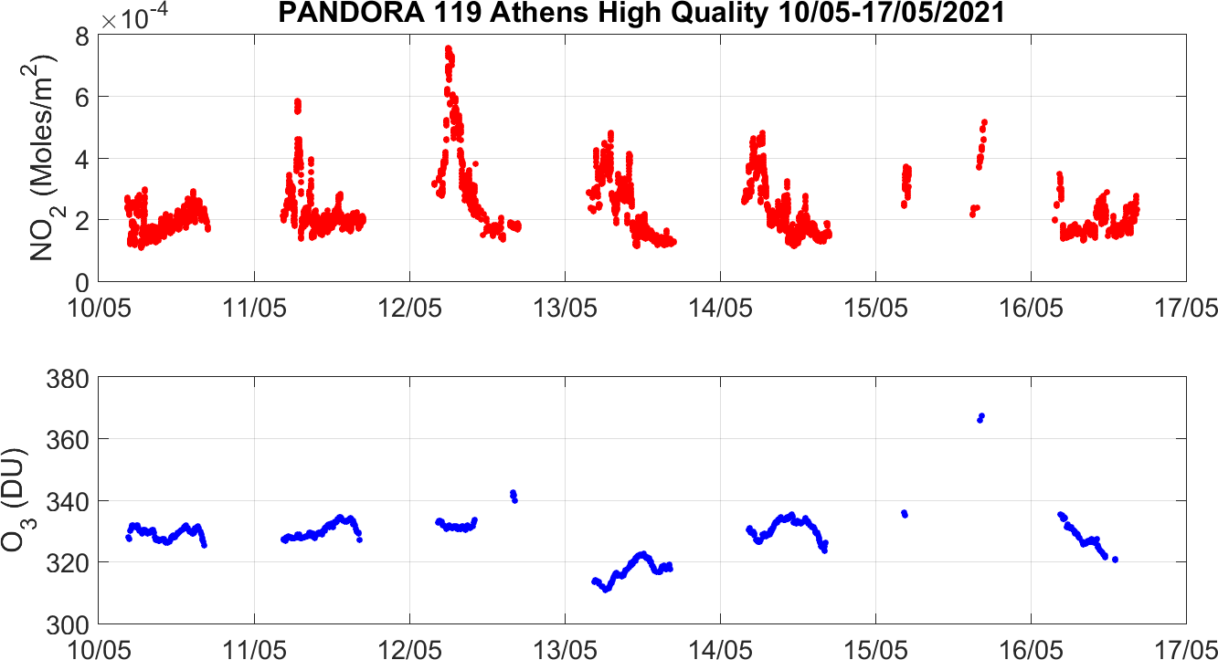 Weekly NO2 & O3 timeseries from 10/05/2021 to 17/05/2021