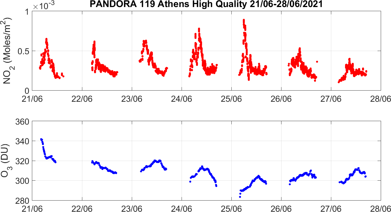 Weekly NO2 & O3 timeseries from 21/06/2021 to 28/06/2021